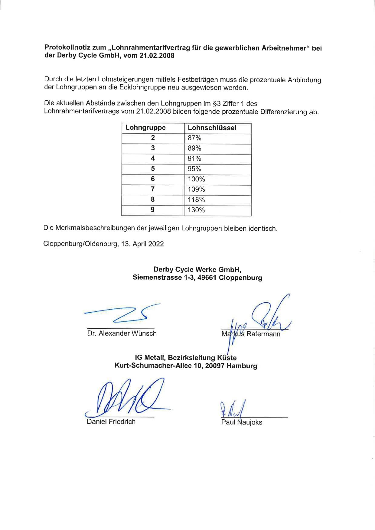 Lohnrahmentarifvertrag Protokollnotiz (2022)