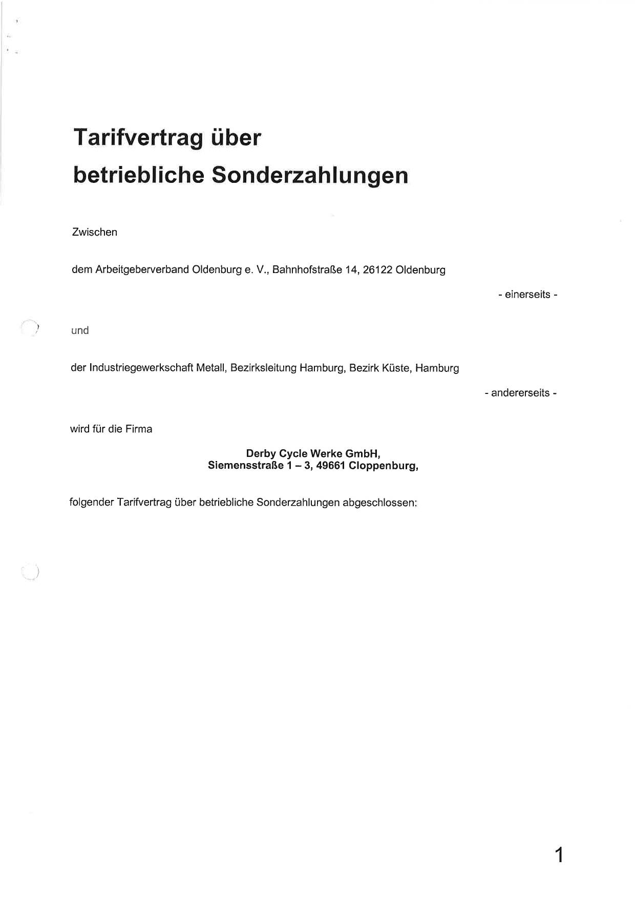 Tarifvertrag über betriebliche Sonderzahlung (2008)